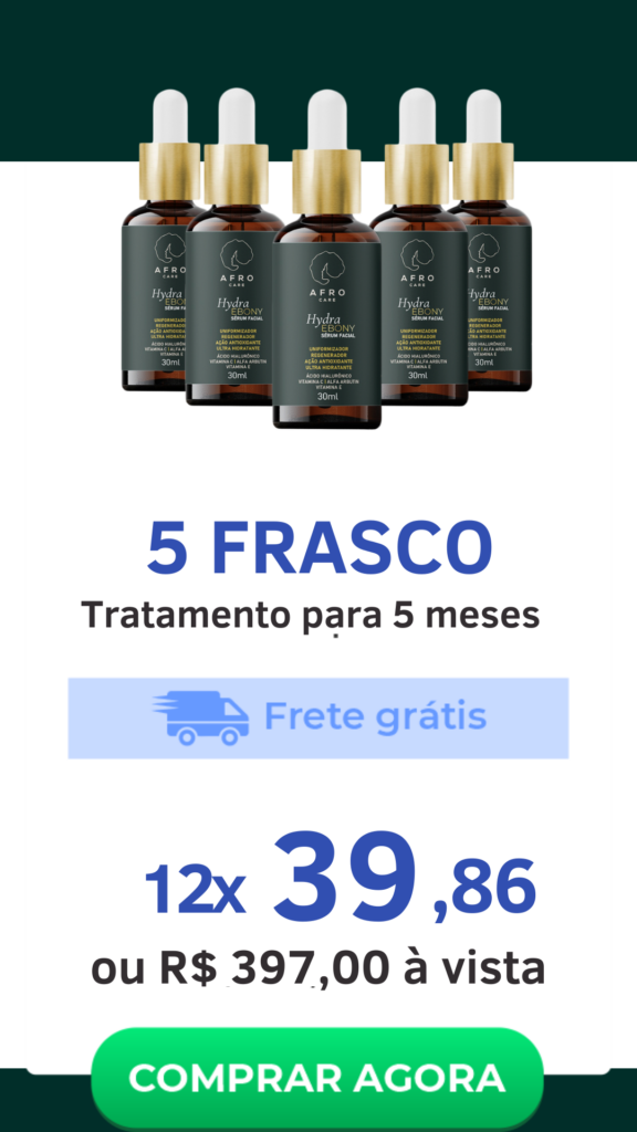 Hydra Ebony é o primeiro Sérum brasileiro 100% desenvolvido para pele negra, todos os nossos ativos foram pensados para atender as necessidades da nossa pele. Nossa fórmula conta com a combinação de 5 ativos que juntos proporcionam utra hidratação sem deixar a pele oleosa, além de ajudar a tratar e eliminar manchas na pele, deixando a pele com uma aparência mais uniforme.